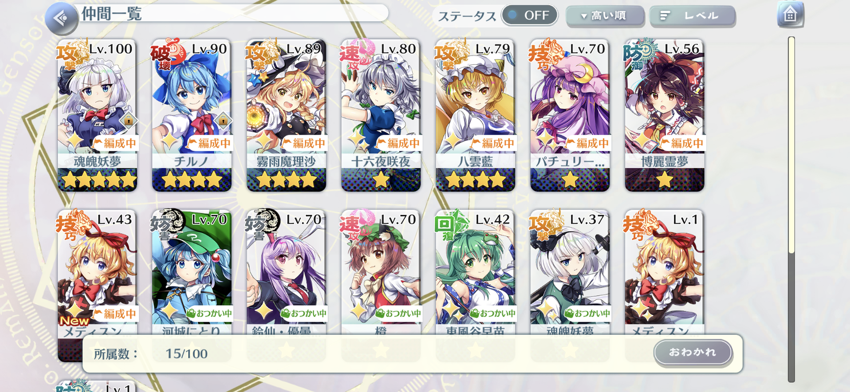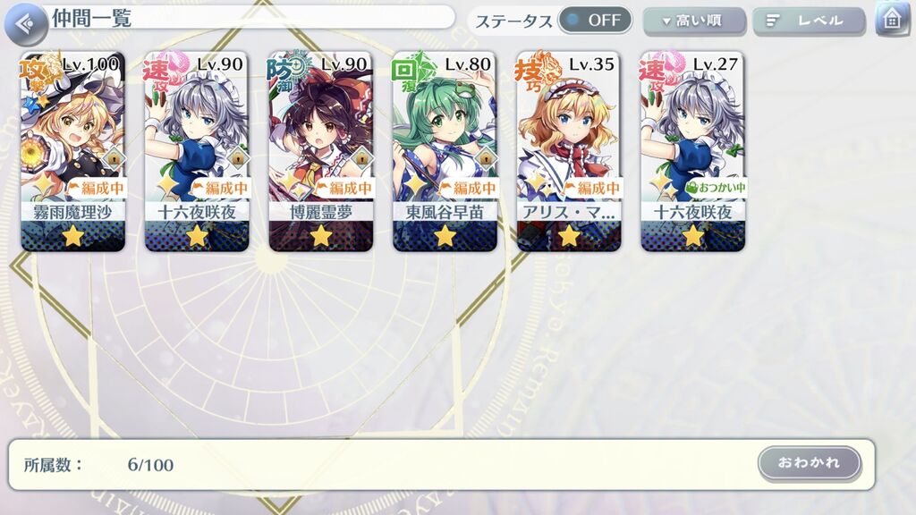 咲夜さん貰うまでおつかい1PTも満員編成できなかったのか