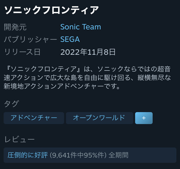 人気でたくらいで今回のソニックフロンティアで