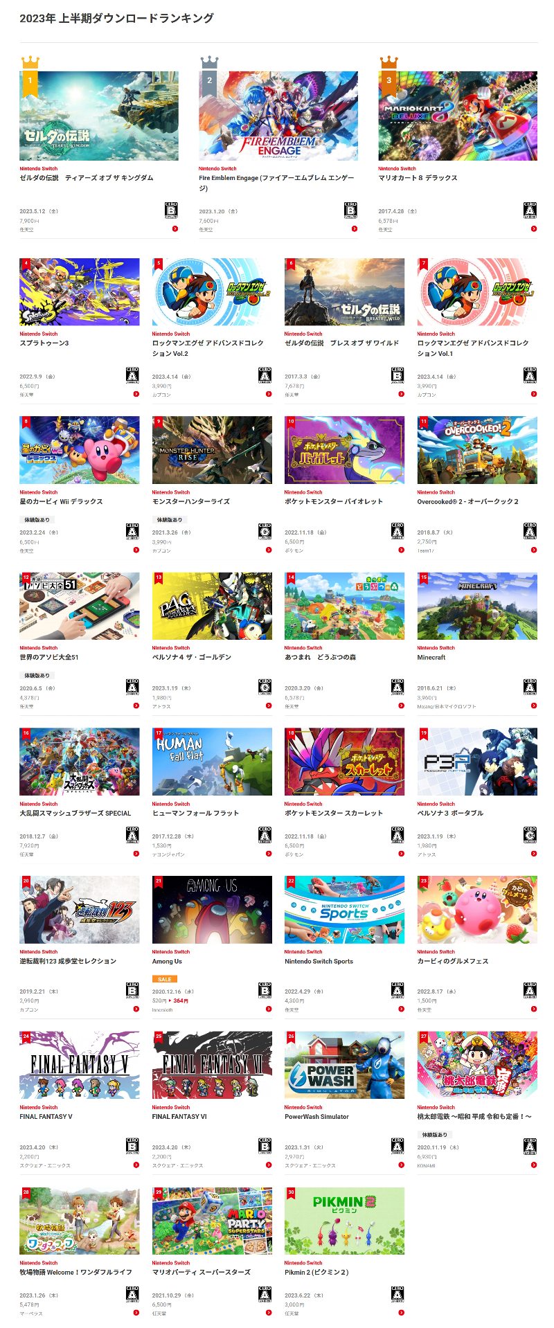エンゲージが2位とか任天堂もDL全然やな