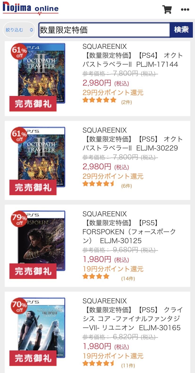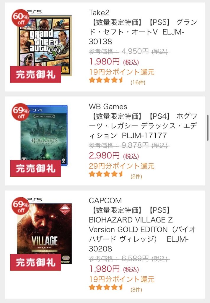 なんだ中古セールかよ…え?PS5は全部新品?!