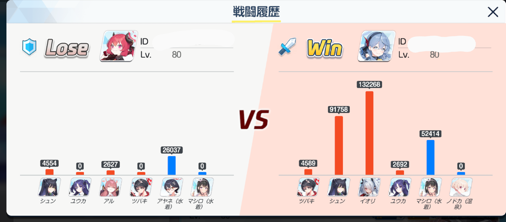 水マシロがツバキ→イオリでツバキ1発→アル1発→ユウカ1発→シュンがユウカとシュン落とす