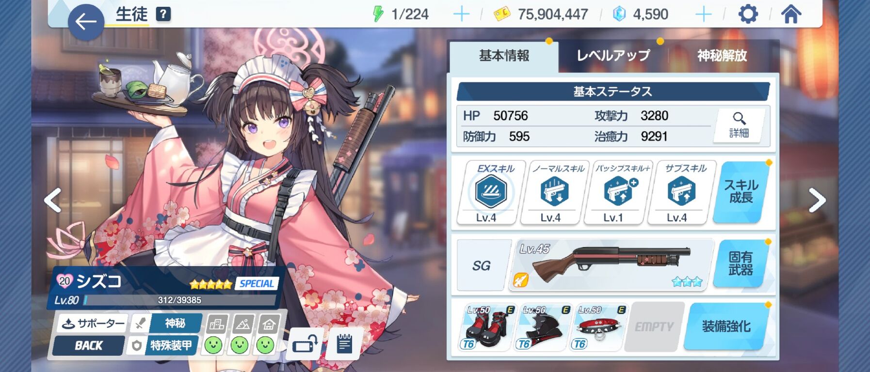 星3レベル81、靴7ヘアピン6、EX3、NS1