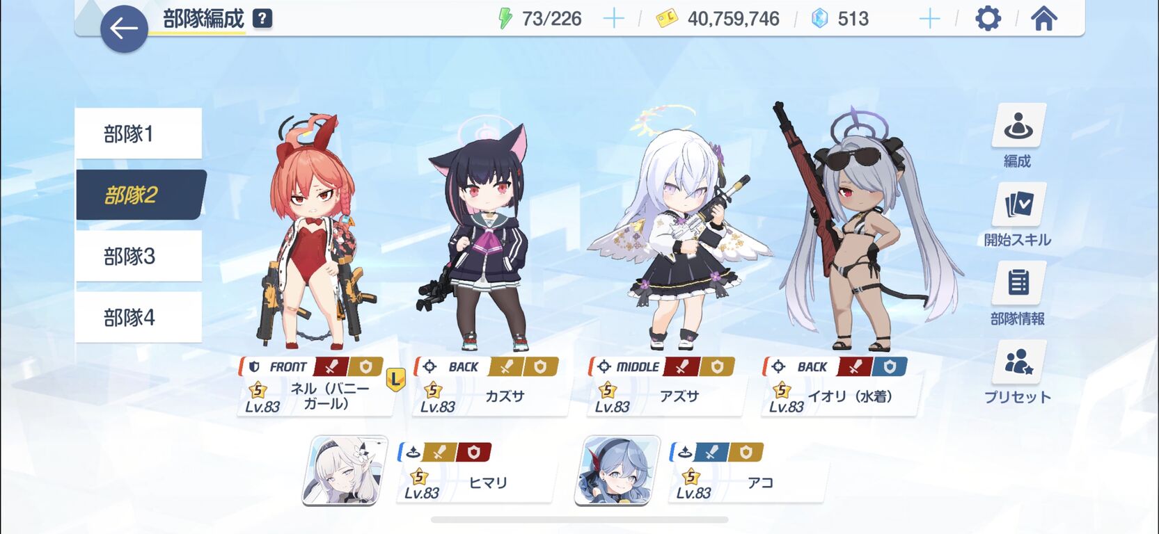 バニー00→アコ→ヒマリ→火力生徒