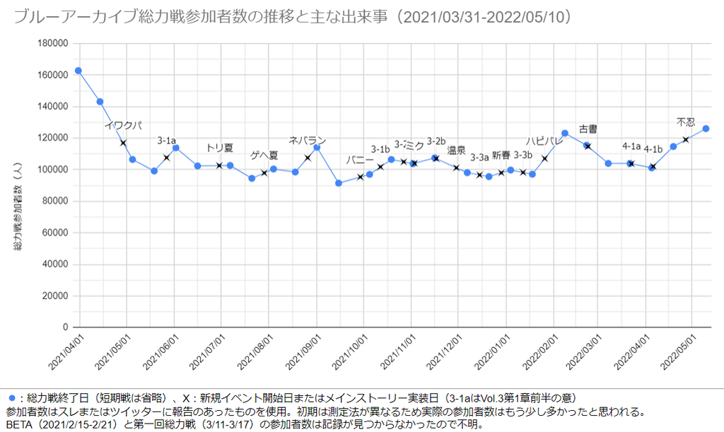 総力戦参加者が10万人を上回ったかどうかでブルアカが盛り上がってるかどうかを判断してたんだよな