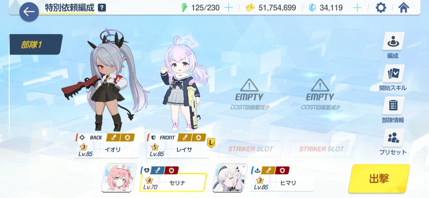 wikiのコメント欄とか見てたらイオリLv70台☆3でクリアしましたみたいな報告チラホラあったからさ