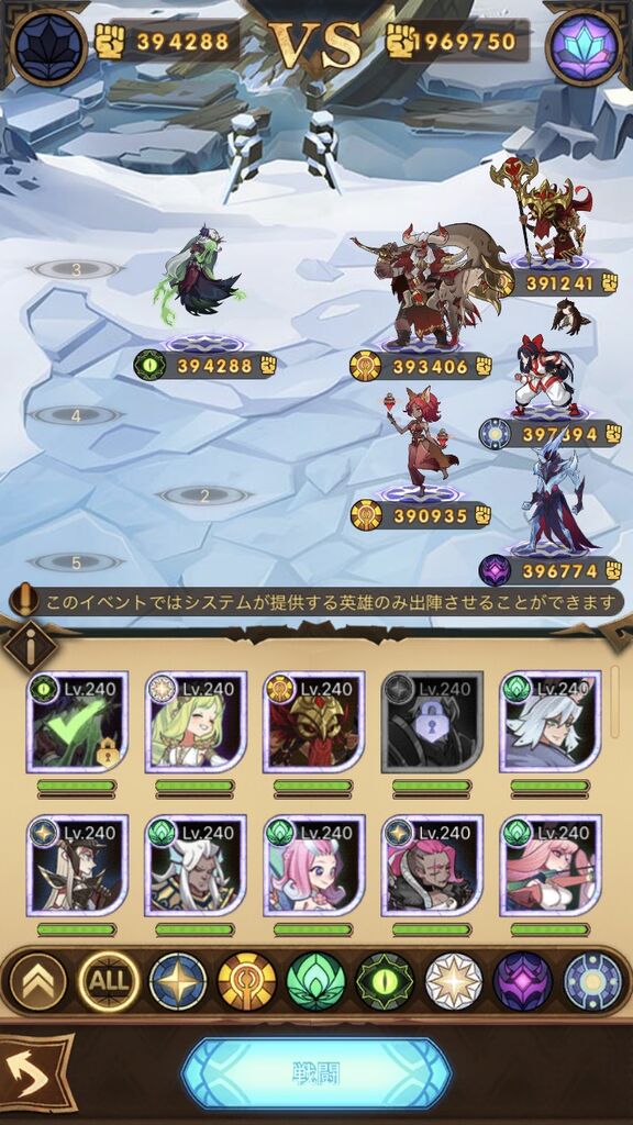 フレイラ、タシー、ライカ、テルミン、クインで行けた