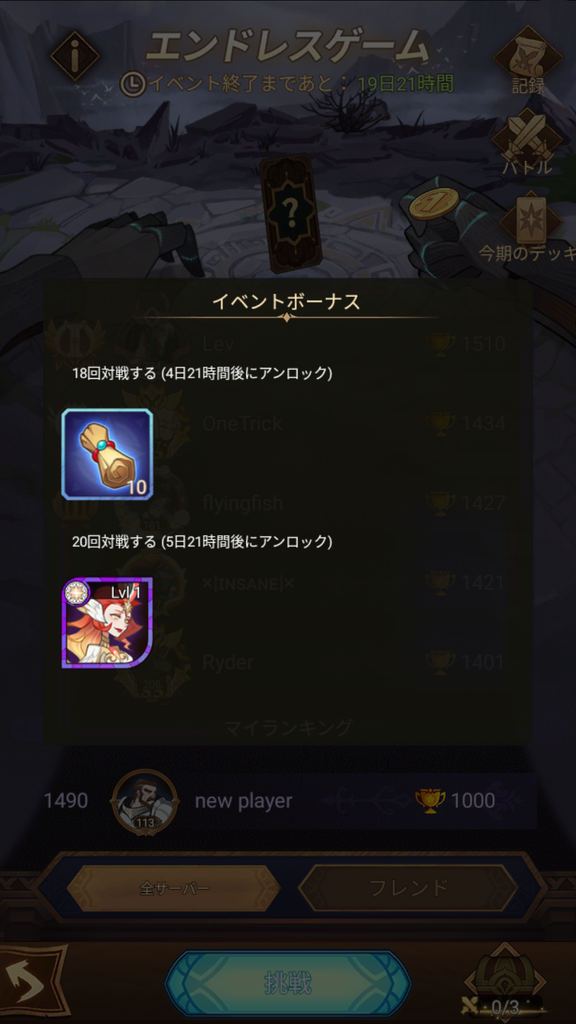 エンドレスゲーム20回対戦でただタレン貰えるじゃん
