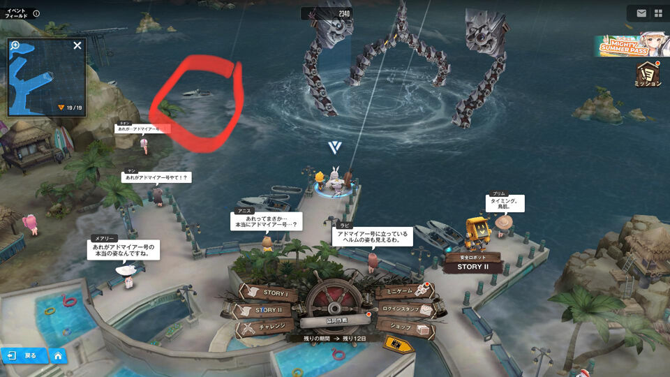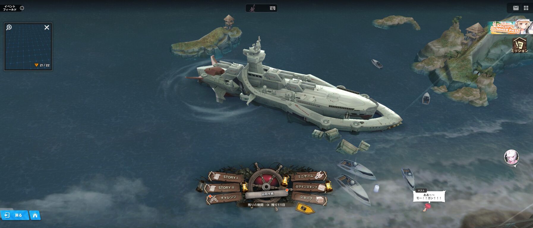 操作キャラの横の船の方がでかいやん