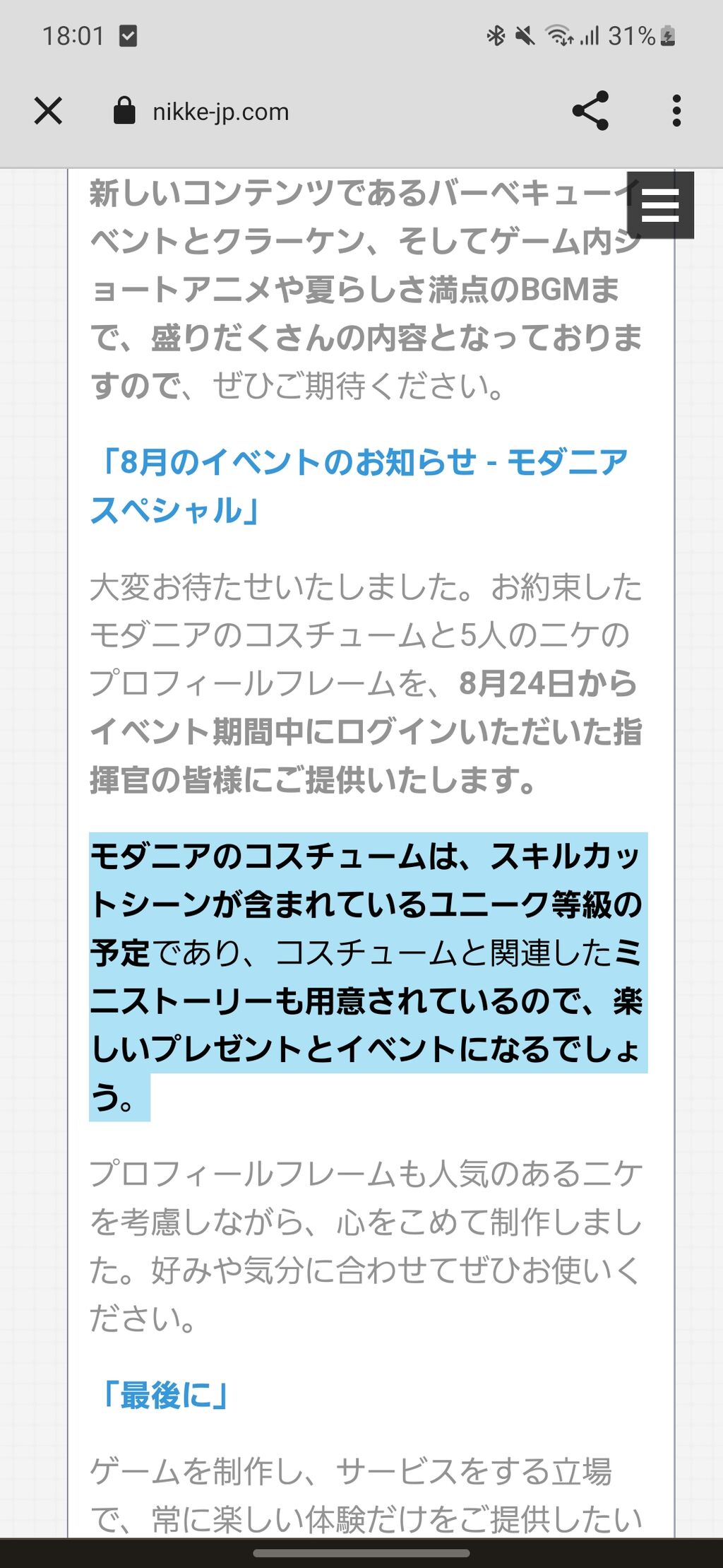 8/24にモダニアのコスチューム配布ある