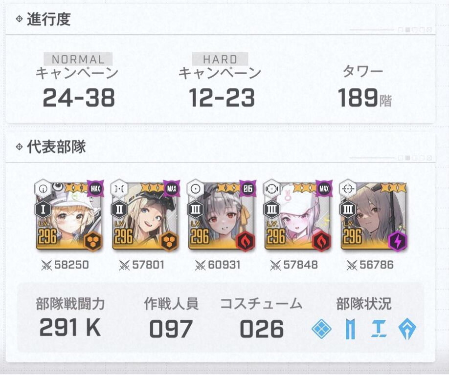 半年以上放置してたから160すら行ってない もうアリーナは一生触らないと思う