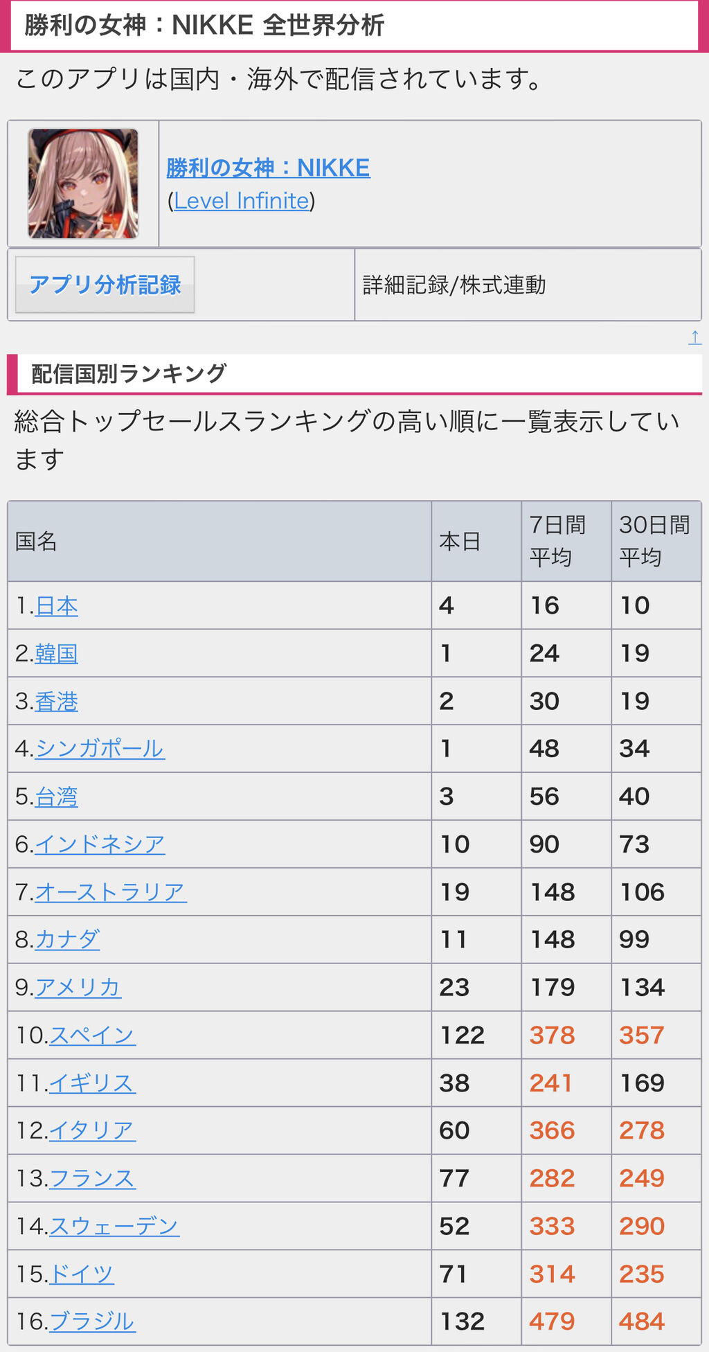 上位3つがそもそも日本だけが強い(もしくは日本でしか展開してない)タイプのゲームだから、世界合計したらまあ普通にニケの圧勝だわな