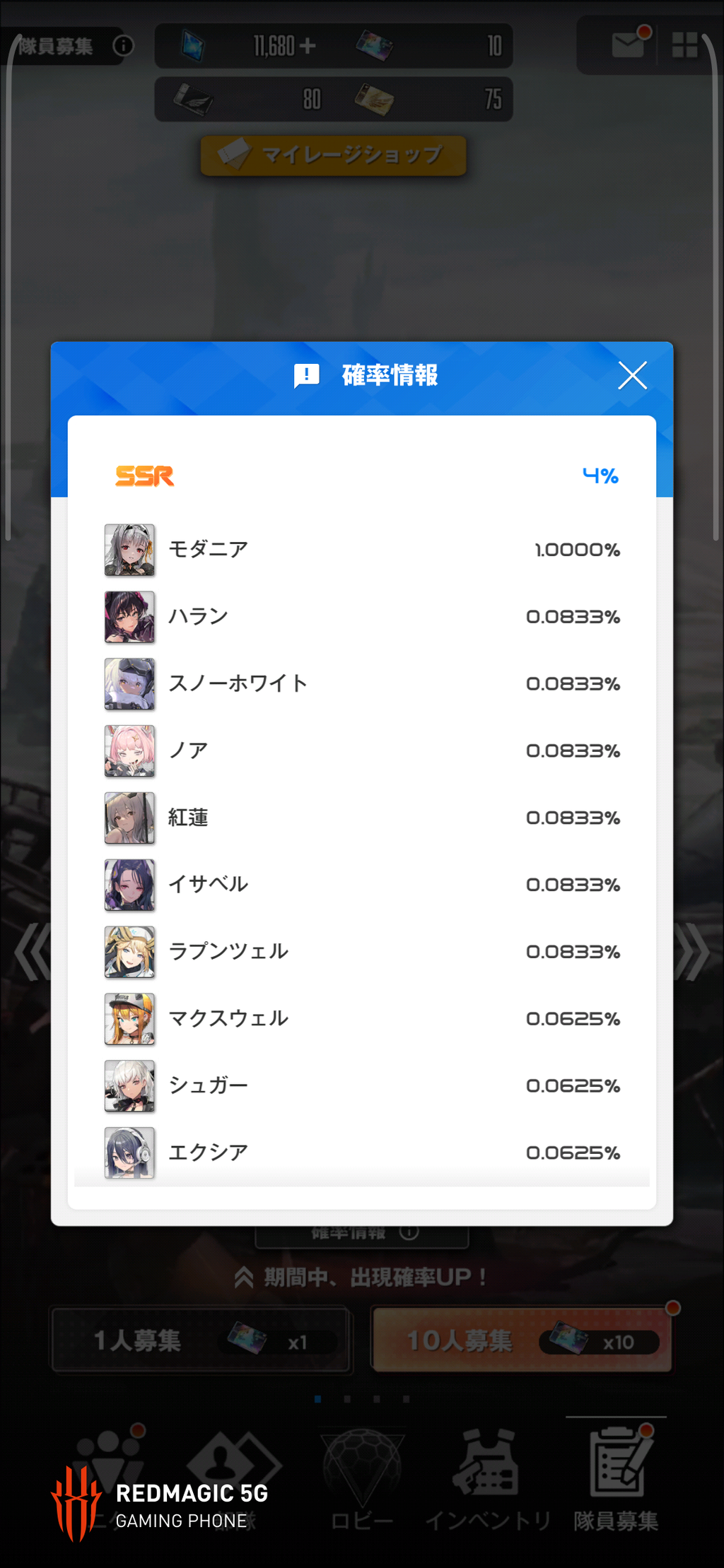 個人的な感想だと、モダガチャは元旦の0時から0時45分ぐらいまでに回すのが最高だったと思う
