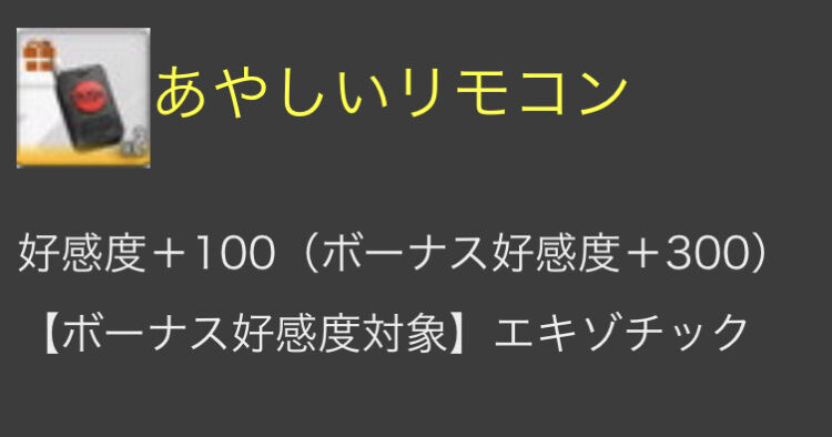 あやしいリモコンがエキゾチック特効の好感度アイテムか