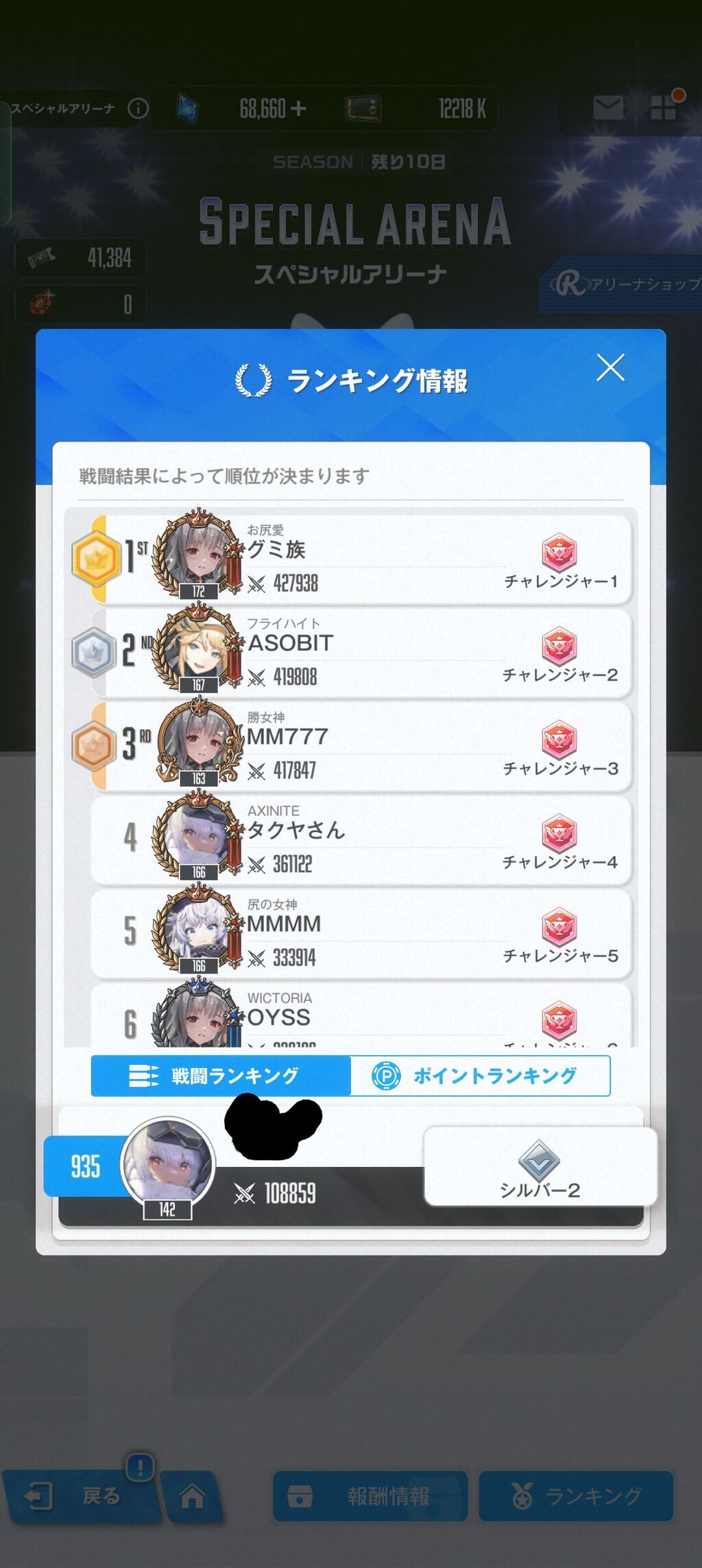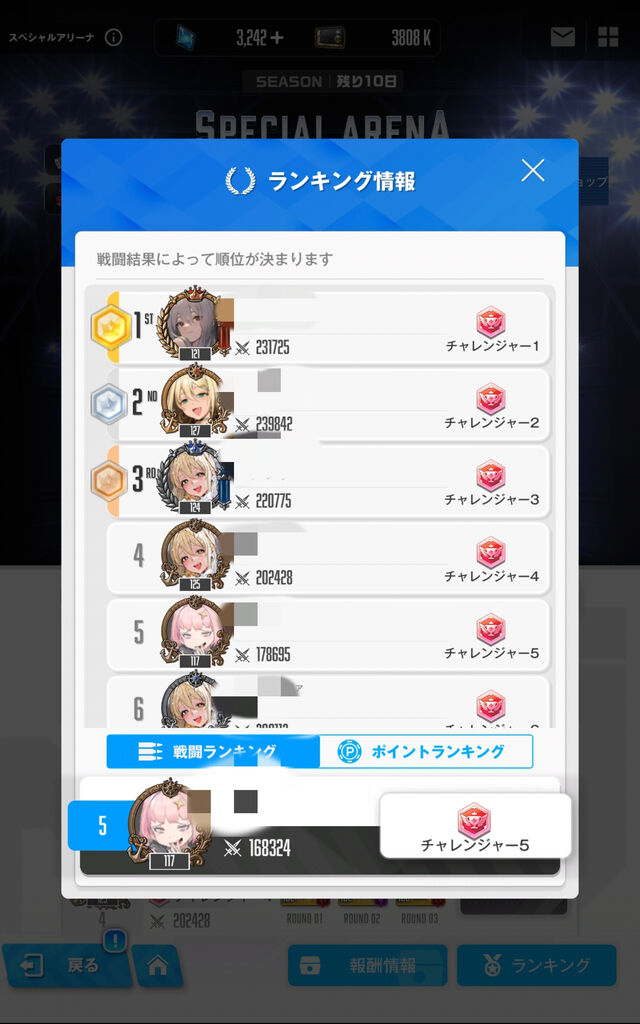 1位の人、うちのダイヤ10~7くらいの戦闘力なんだけど…