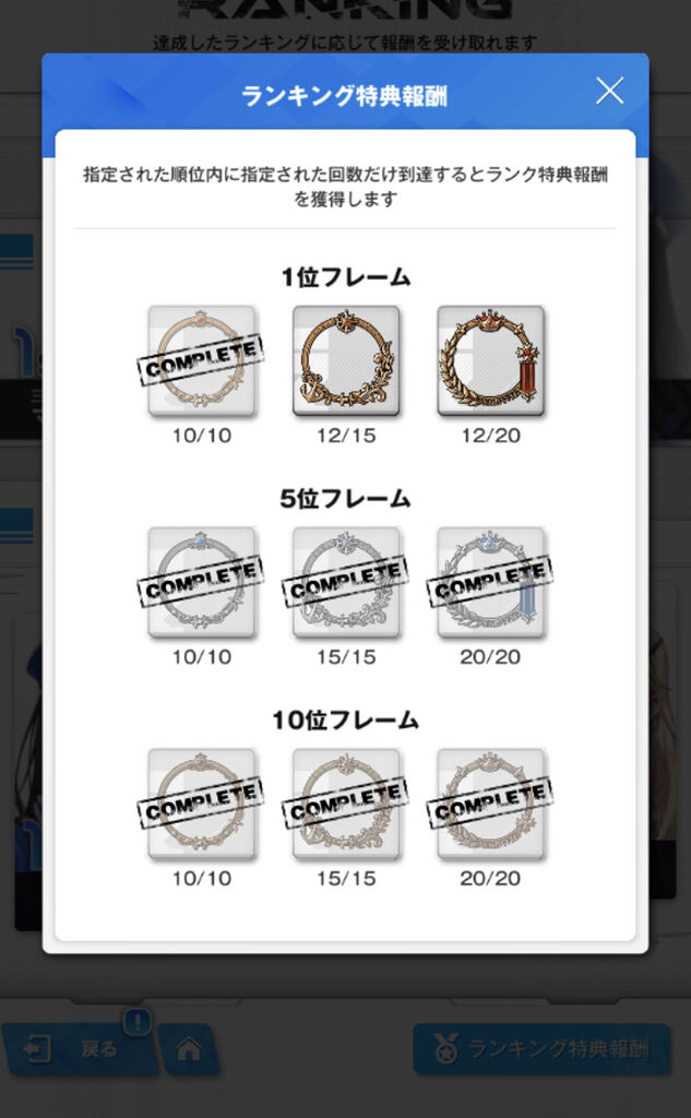 成長ランキングとかタワーとか個別のランキングに入ってから右下の報酬情報押して