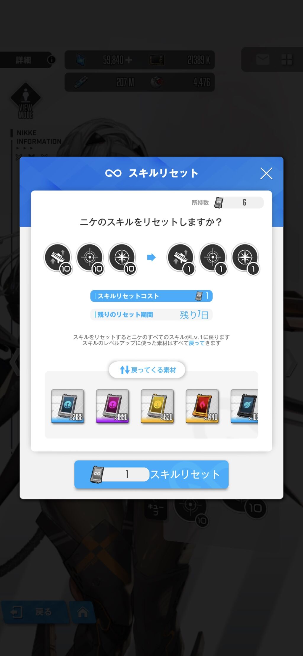 スキルリセット券が6枚