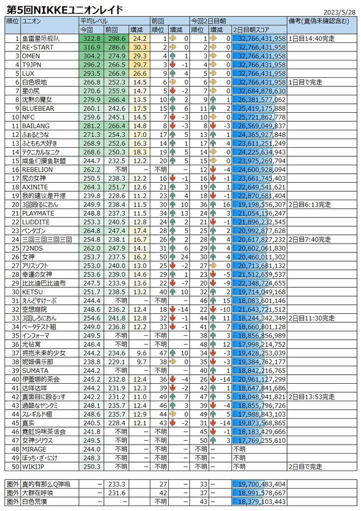 ユニオンの進行度と良いデータで纏めるの好き系な人だったのね