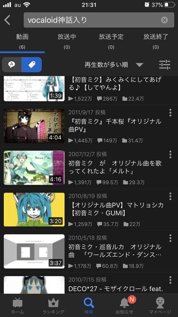 みっくみく、千本桜、メルト、マトリョシカ、モザイクロールだったと思う