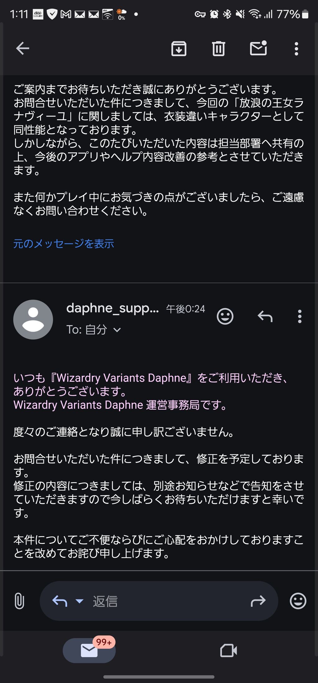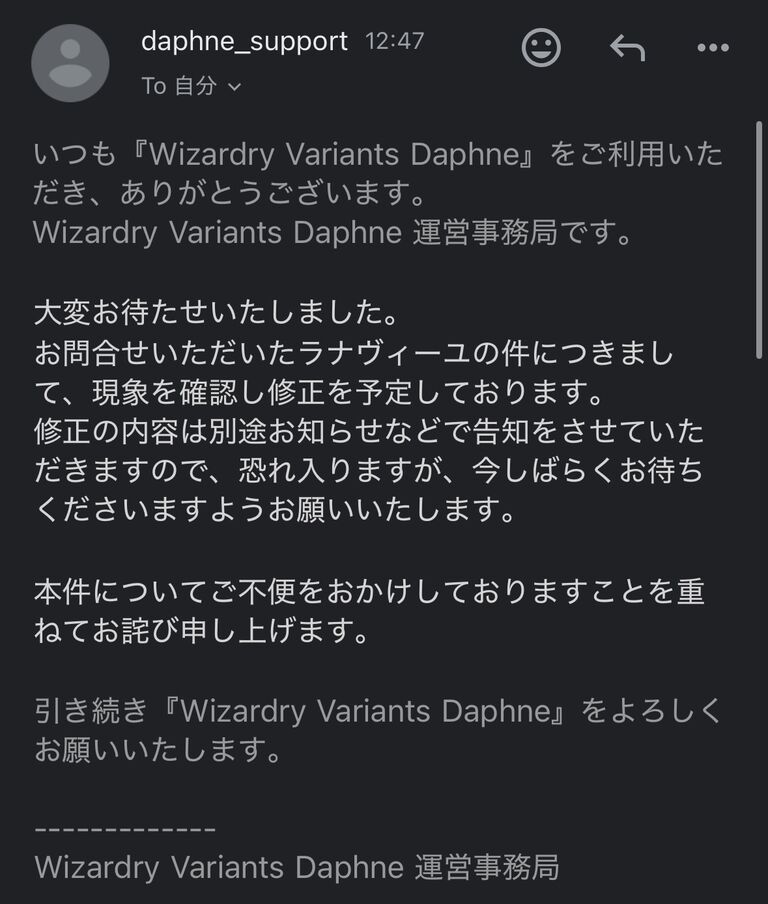 そうそう昨日のスレにも貼ったけど放浪ラナのスキルの件について問い合わせたら10日経って現在確認中ですのメールきたから再度問い合わせたらこれやった