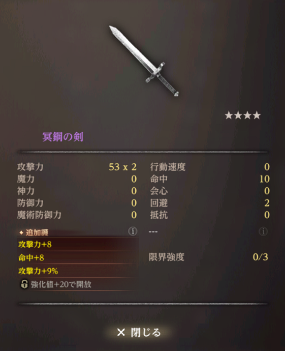 今後は装備の追加護は回避、命中、会心、行動速度メインになると思う😅