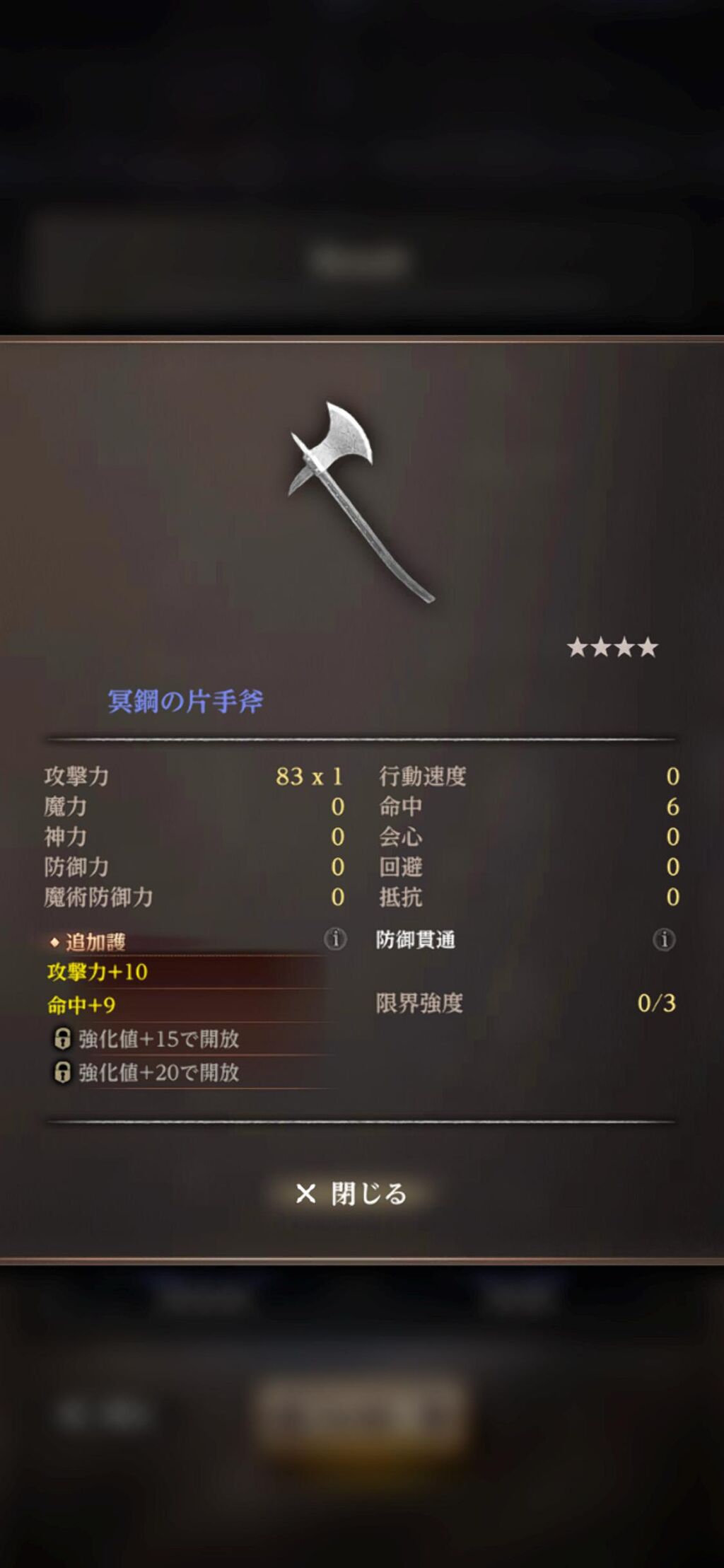 ☆4青片手斧を防御と防御%に変造して育ててみようかな