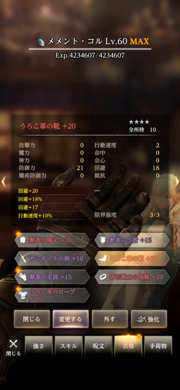 装備を+20にするのがしんどいのよ